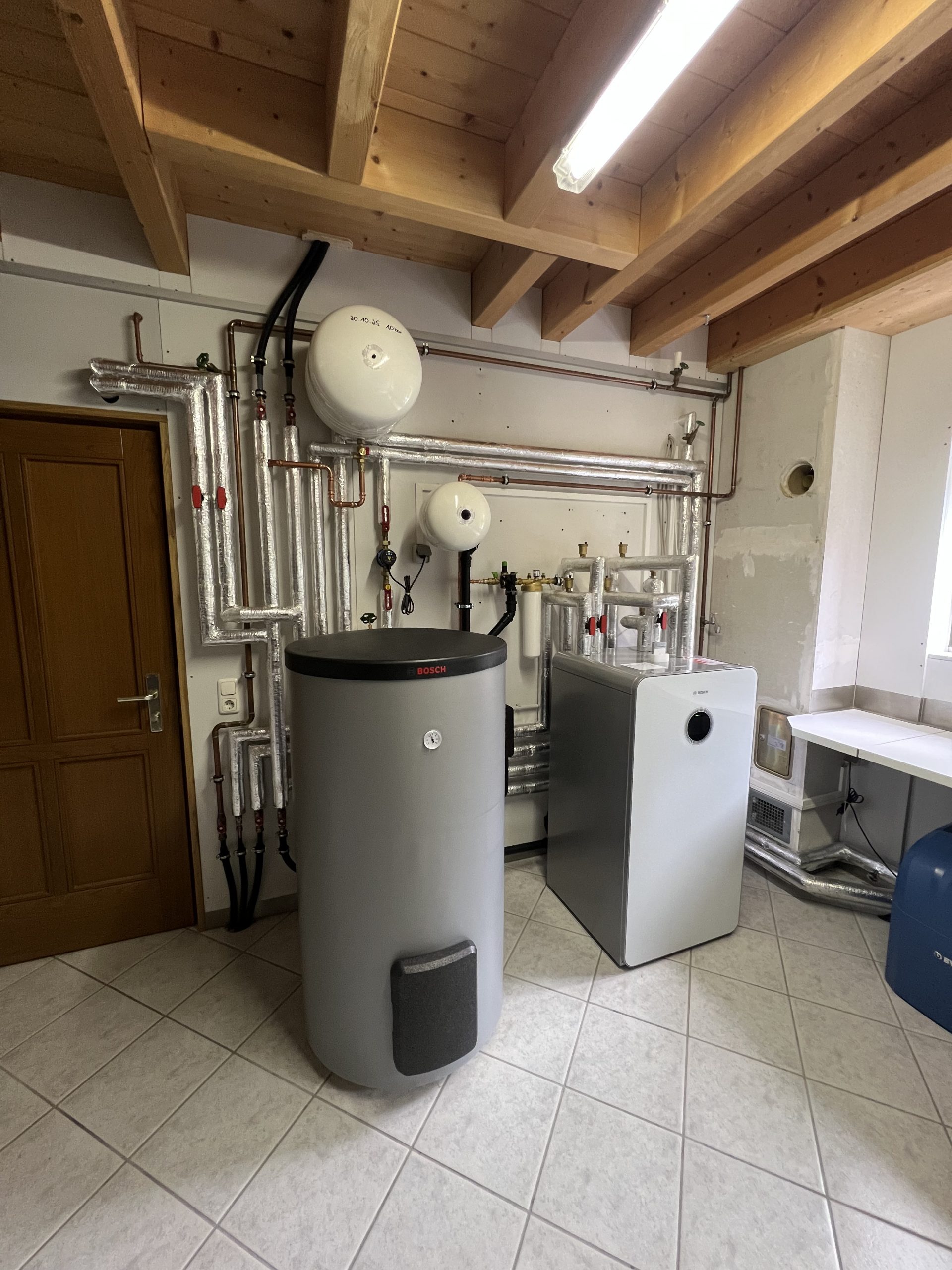 Sie sehen hier die Installation einer Luft-Wasser-Wärmepumpe des Herstellers Bosch im Vergleich zu einer vorherigen Gas-Brennwertanlage.